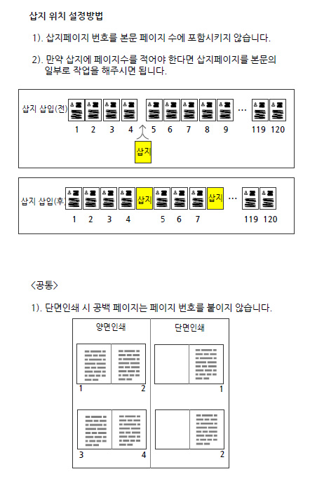 * 위치 입력방법은 삽지가 들어갈 본문 페이지번호 사이에 ^ 기호로 표기